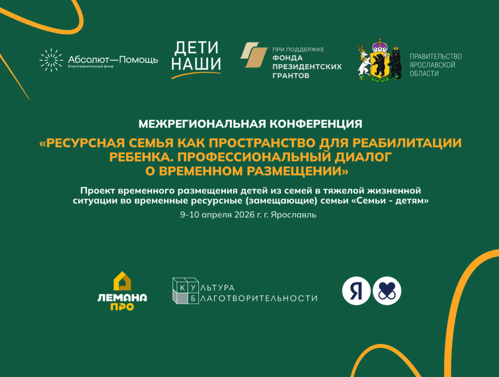 Цель конференции: наладить профессиональный диалог с органами системы защиты детства в Ярославской области и представить на региональном уровне практику размещения детей во временные ресурсные семьи как один из способов сокращения стажа сиротства и семьесбережения.